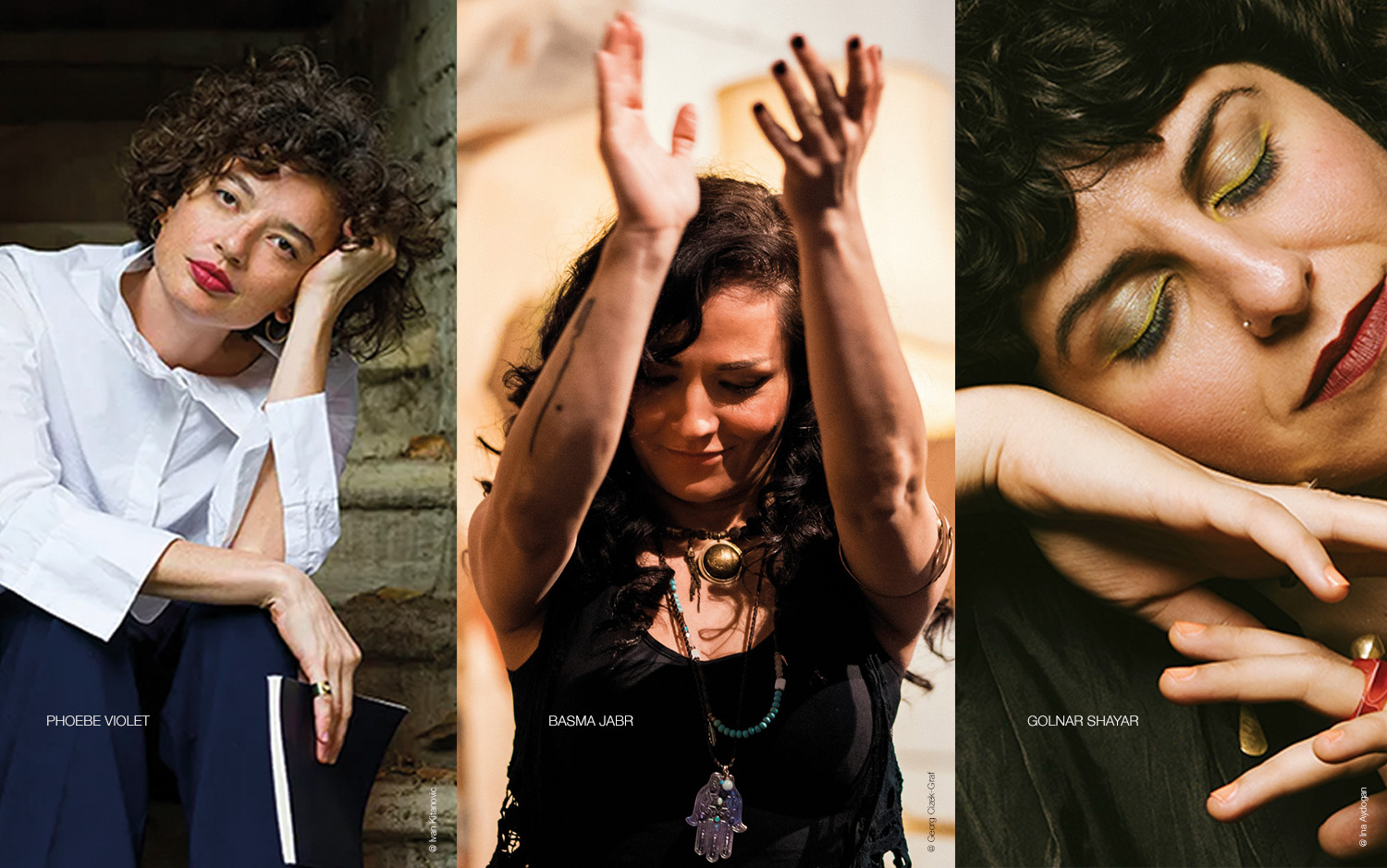 PHOEBE VIOLET stammt aus Costa Rica und verbindet ihre Wurzeln mit ihrer gelebten künstlerischen Praxis, zuletzt veröffentlichte sie das Album „Suspiros“, auf musicaustria.at so rezipiert: „Im Zentrum stehen Stücke für Gesang und Gitarre, die sich stilistisch zwischen traditionellem Fado, südamerikanischer Liedkultur, europäischen Kunstlied-Anklängen und kammermusikalischen Einwürfen bewegen. Phoebe Violets Stimme trägt die Stücke ohne Effekthascherei – klar, leicht verletzlich und mit einer geheimnisvollen Ausstrahlung.“ Line-Up: Basma Jabr (Vocals, Frame Drum); Mahan Mirarab (Electric and Acoustic Guitar, Bass); András Dés (Percussion); Daniele Camarda (Bass)